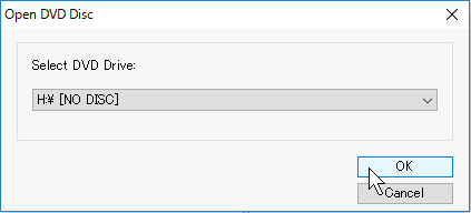 「Open Disk」をクリックして、DVD Movieの入っているドライブを選択する。