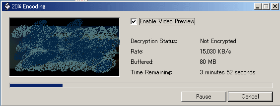 「Enable Video Preview」のチェックが入っていると、変換される画面のプレビューが表示されるが、高速なのであまり意味はない。