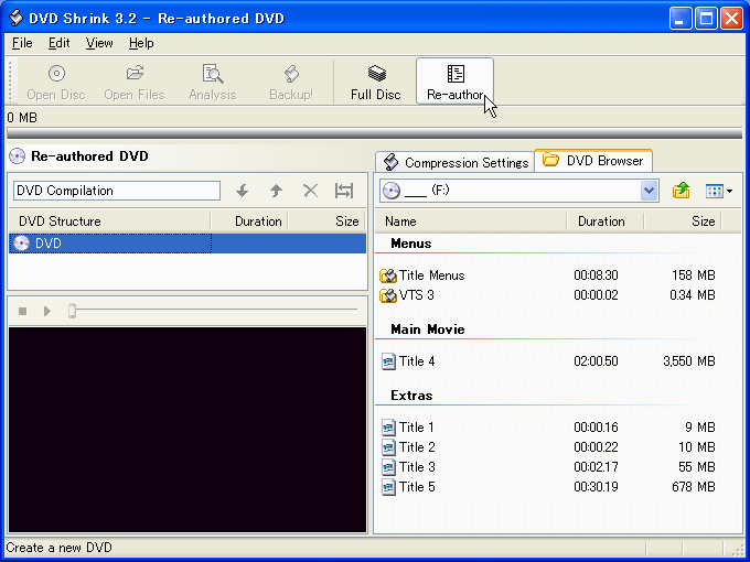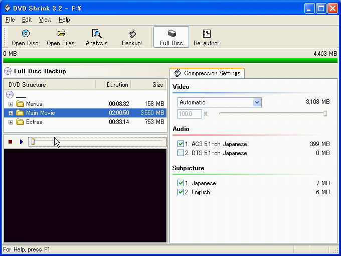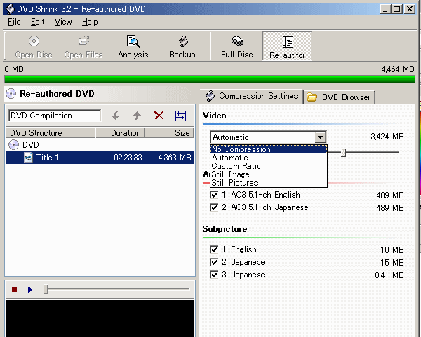 DVD43が実行されている状態で、DVD Shrink を実行する。