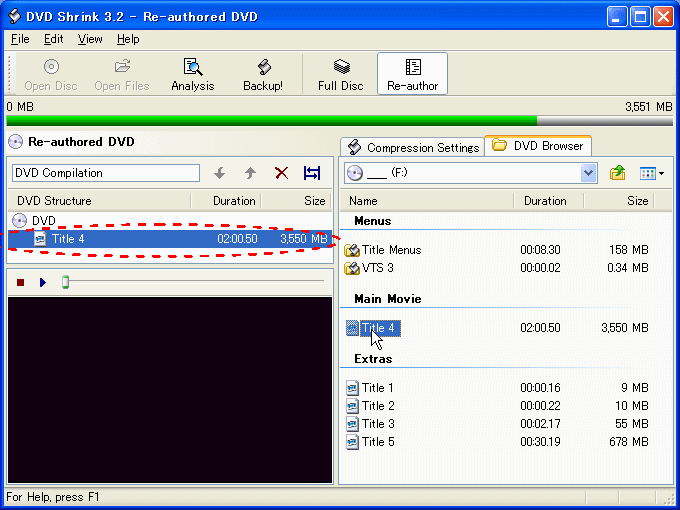 必要なタイトルをダブルクリックするか、左のウィンドウにドラッグすると、DVDの下のリストに追加される。