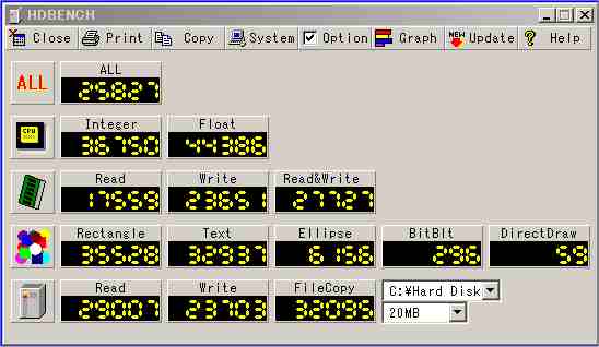 早速、フリーウェアの HDbenchを実行しました・・・? が、CPU 性能やら
