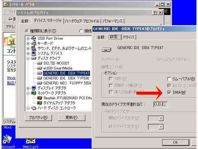 普通は、デバイスドライバをインストールしていけば、DMA のチェックボックスは