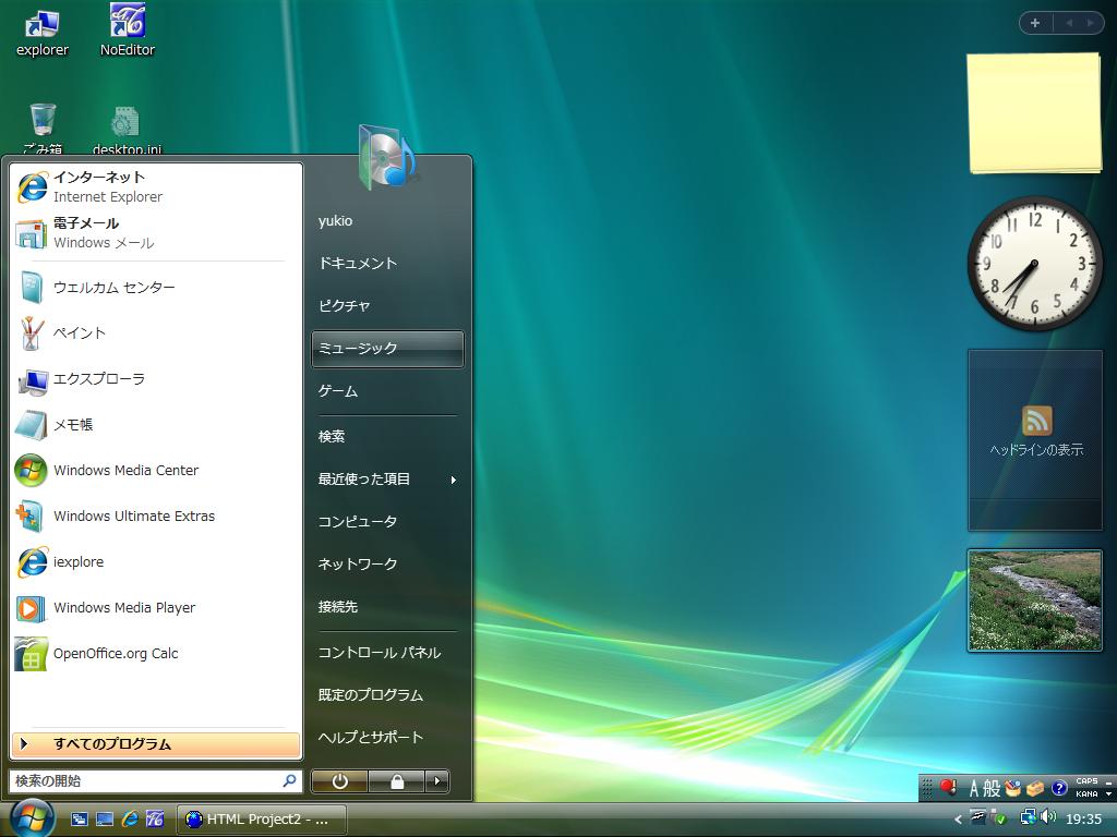 こんなにいっぱいあるのに、実際のDVDは 32bit/64bitの2種類しかなく、縦軸の違いはインストール途中で入力するプロダクトキーによって分かれるようです。(アップグレード版を購入して、DVDからクリーンインストールしようとしてDVDで立ち上げると、途中までは進むのにプロダクトキーを入力した途端「アップグレード版では対象のWindowsからアップグレードインストールしかできません」と出てしまいます) ちょっと横道にそれましたが、私は Windows2000のライセンス、Windows 98からアップグレードした Windows XPのライセンスなどがありますので、Vistaについてもアップグレードで済みます。上の表のようにアップグレード版よりもDSP版の方が安いのですが、DSP版は32bit・64bitが別販売されており 32bit>64bitのアップグレードが同じように1,000円程度の差額で可能になるかどうか分かりませんし、わざわざ申し込んでDVDを郵送してもらうのは面倒です。私のように、32bit版と64bit版を同じハードウェア上で両方試して比較してからどちらにするか決めようと言うときは、アップグレード版を購入する意味があります。 で、早速インストールにかかりました。HDDに Acronis Disk Directerで 基本領域2つと拡張領域を作成し、まず32bit版のインストールから始めます。アップグレード版DVDでのクリーンインストール手順はこちら。別に自身でクリーンインストールしようと、2000からアップグレードしようと、oldというフォルダを削除するのは同じですが、「出来る」と聞けばやってみたくなるのが人情です。で、2時間ほど掛けて 32bit版のインストールが済み、一通りの確認をしてからすぐ 64bit版のインストールに移ろうと思ったんですが、Vistaは GUIが XPとはかなり異なっており、操作方法を見つけるのが一苦労で、結局翌日 64bit版のインストールをすることになりました。念のために、Acronis True Image でCドライブのパーティションイメージを保存しておきます。 さて、64bit版のインストールですが、上記のクリーンインストール方法にも書かれていますが、アップグレード版でのクリーンインストールは都合2回インストール作業をする事になり、結構面倒です。もう32bit版がインストールしてあるので、この32bit版の1回目のインストール後に取ったパーティションイメージを別パーティションに復元して、その上に64bit版をインストールすればインストール作業が少し短縮できるだろうと思ったんですが、実際に試したところ32bit版から64bit版へのアップグレードインストールは不可能でした。「アップグレード対象のO/Sではありません」としかられてしまいました。仕方ないので、最初からインストールをやり直し。結局 土日をつぶして 32bit版と64bit版のインストールが完了しました。 Aeroと呼ぶデスクトップの半透明処理の「もやもや」っとした感じは下の図で雰囲気がわかると思います。個人的には何でこんな表示に余分な処理を食われるんだと思いますが、とりあえずこのまま使ってみることにしました。