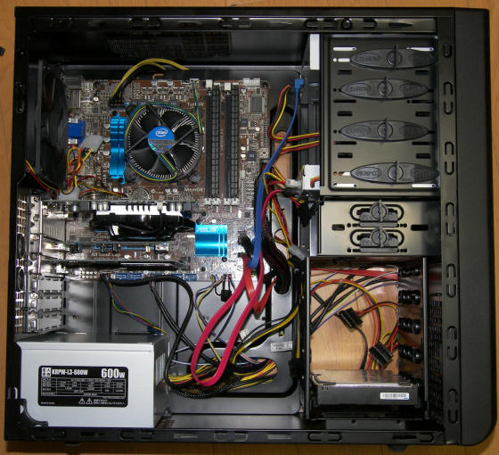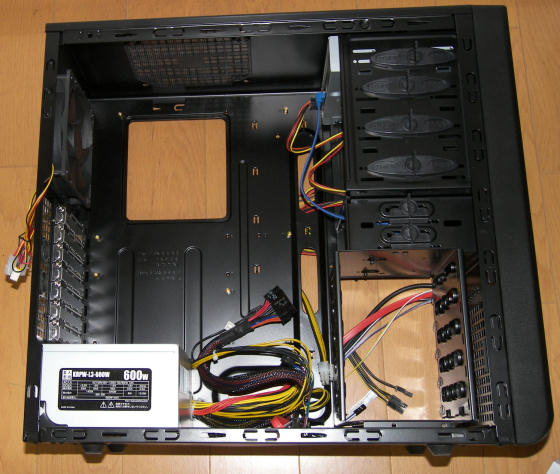 電源は 最近主流の 80PLUS認証はないものの自称 効率 80%以上をうたっている玄人志向の KRPW-L3-600W にした。構成からするとどう考えても 400WでOK、500Wでもおつりが来そうだが、経験的には 最大定格の 半分以下の出力で使った方が ファンの回転スピードが低く静音化できる、と思って更に+千円で +100Wの電源にした。