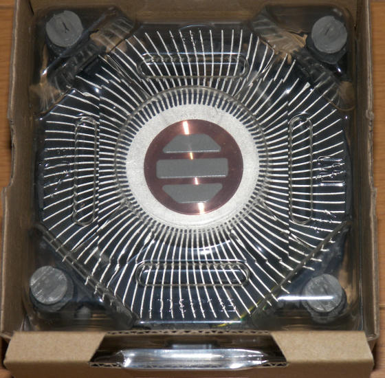 いよいよ購入翌日から満を持して本格組立開始。まずは M/Bに CPUを載せて その上に CPUクーラーファンを取り付け。実は最近のリテールCPUは下の写真のようにクーラーファンの CPUアテつけ面に予め灰色の放熱グリスが塗布されている。次に、メモリを取り付けてから ケースに M/Bを組み込み。