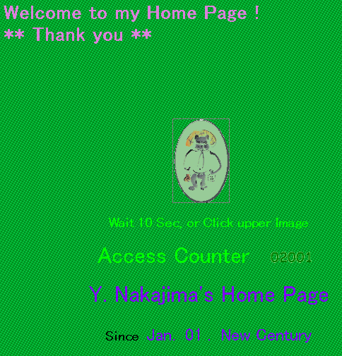 久しぶりに自分のページを開いたら、カウンターが2001だった。 2000のキリ番は逃したが思わず記念にスクリーンコピーをしてしまった。去年の半ばにカウンターをセットしてから、このページのアクセスがやっと2000を超えた。但し、私のページはトップページのカウンターが別になっており、他のページは多いものは 18,000くらい、トータルで35,000くらいになる。それでもあまた多くのページからすれば大したことはないかも知れないが。 本当に 「独り言」のようなページだからと思いつつ、また独り言を書いてしまった。