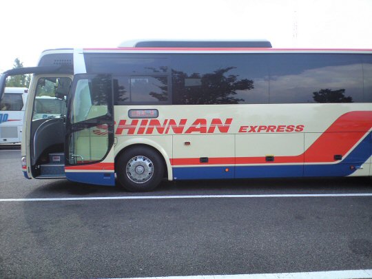 昨日、今日と前回書いた中学時代の同級会に行ってきた。総勢 48名中、幹事の努力で 22名の参加者がいたが、予め想像していた通りに殆ど顔は分からなかった。何せ前回の同級会から 10数年が経っている。それぞれの人生が滲み出ているのかどうかは定かでないが、髪は益々薄く白く、腹はせり出し、皺は無情にも・・・(これ以上は生々しくてとても書けないが)といった具合で、最初会ったときに、何となく面影はあるものの名前を思い出せない顔が半分、面影すら思い出せない顔が半分と言ったところだった。 しかし、そこはやはり幼なじみ。話をするうちにだんだん当時の顔の表情が滲み出てきて、思い出話に話が弾んだ。人はしかし、大体は覚えていて欲しくない出来事ばかりを覚えているが、覚えていて欲しい事は覚えていてくれないものなんだと再認識した。それにつけても、先生というのは何と記憶力のすごいものなんだろう。70歳を超えても尚、誰の弟妹が誰で、どのクラスにいたとかスラスラと出てくるのには恐れ入った。一種の職業病<<<元へ!身に付いた職業特技なんだろうと感心した。 そして、今日の帰りの高速バスでとんだハプニング! 飯田駅前で乗車して、次のバス停に着くと昨夜見たばかりの--かってのマドンナ(?)--が乗車してくるではないか。びっくりしていると、何と乗車券の座席は私の隣でまたまたビックリ。何か出来すぎた偶然のお陰で新宿まで退屈することなく、思い出話やら、お互いの(と言いつつやはり 9割は私の?)卒業後の話に花が咲いた。 今日の写真は、帰りに乗ったその高速バスの車影。昔から変わらない、多分企業のイメージカラーなんだろうか?昨今主流の白をベースに明るい赤や青や緑でペイントされたバスとは明らかに異なる、頑ななまでに肌色主体のボディで、新宿のバス停でも一目でそれと分かる懐かしいバス。