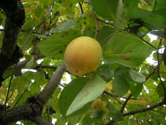 今日は金曜日なんだが、無職で気楽な身の上、天気も日中はいいが今夜から崩れそうでもあり、藤野に残してきた家の風通しがてら、柿取りに行こうかと朝天気を見て何となく思った。 朝飯を食べ終わって、ヨメさんが出かけた後、こちらも早速出かけた。明日は天気にかかわらず、連休の混雑になると思うが、きょうは停滞もなく快適なドライブ日より。藤野の家の庭の柿の木は今年は重いほどに実が付いていた。柿の実は色づいて、先っぽの方には黒い縞が入って食べ頃だと思われる。試しに一つとって皮をむくと、蜜の黒い点がたくさん入っている。やはり丁度食べ頃。近所に配った後、20個ほどとって帰ってきた。この柿は、名前は知らないがスーパーや八百屋の店先に並ぶことがない珍しい柿。甘みは強いが、甘くても今の時期なら柔らかくなることはなくパリパリとした食感でとても美味しい。この柿を食べるようになってから、店で買う柿は食べれなくなってしまった。(但し、この写真の実は先っぽの縞が無いからまだ渋いと思われる。)