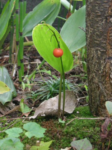 昨日のe日記で書いたように、神奈川のチベットに残した家に掃除がてら柿を取りに行ってきた。その行き帰り、一人で運転なので、ちょっと退屈だろうと 普段はなかなか聞けない、昔のCDでも聞こうかと思って 3枚ほど持って行った。しかし、相模川沿いの信号の少ない道を走ったせいもあり、自分で運転しながら聞いていると、丁度 CDの演奏が終わったときに信号待ちで止まることもないから、ついCDが終わったのも気付かないで無音の時間が長くなる。無論聴きたい曲だけ聴くなんて芸当も中々出来ないことが分かった。 そこで、好きな曲だけ集めて、ついでに私のカーナビの付属デッキではCDしか聞けないので、DVDに入っていたりインターネットからダウンロードしたmp3ファイルも CDに入れてしまおうと思って、今日はその作業に没頭した。折角こうした方法を探しつつ作業したので、また忘れないうちに 方法を Webにアップしておこうと思って、そちらも手を付け始めたが、Webが完成するのは明日になってしまう。 今日の写真は、昨日その家の庭で撮ってきた スズランの実。4つ5つ実っていたらしいが、これは最後の実のようだ。この実はどうやらスズランの根と同様に毒があるらしいのだが、とてもそうは思えない、あでやかな色のコントラスト。