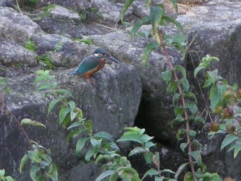 今日は秋晴れの気持ちいい日だったので、横浜・青葉台の寺家ふるさと村という所に散策に出かけた。 田園都市線の青葉台からバスで15分ほどの所に、ここが横浜か?と思うような田舎風景が広がっている。丁度田んぼの稲刈りが終わった後で、はざに稲が掛かっていた。今時、田舎でも稲を天日干しすることは無いのでは?と思ったが、ここでは天日干しだった。2時間弱歩き回ったが、なんとその間に カワセミ、コサギ、シロセキレイ、カモ、シマヘビ、カメ、イナゴなどに出会った。予想していれば望遠付きのカメラを持って行ったんだが、コンパクトカメラでも写真としては大収穫だったので、今日からしばらくはそれらの画像を使おうと思う。 取り敢ず今日はそのスタートで、カワセミ。3箇所でカワセミを見たが、中でもこのシーンはわずか 10mほど離れたところに止まっていたので、コンパクトカメラでもこの程度に撮れた。
