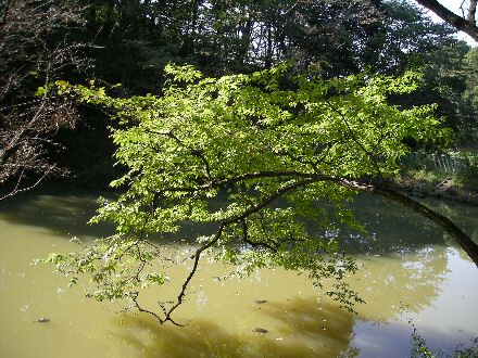 学生時代の研究室の先生を手伝っている関係で、微生物の生態を勉強しないといけないんだが、微生物ってそのままじゃ目に見えない。細菌が死んだとか、死ななかったとかを腐った臭いやカビで見ていたんでは、イマイチ説得性がない。 色々考えたが、結局顕微鏡が一番手っ取り早いことになった。Webで探すと、オモチャに毛の生えたような顕微鏡でデジカメで写真撮影が可能なセットが2万円位で買えることが分かったので、おとといの夜、ポケットマネーをはたいてネットで注文したらもう今朝届いた。さすがネット万能時代! 今日は一日、顕微鏡をのぞいたり、カメラで撮影の具合を見たりして過ぎてしまった。 ということとは関係ないが、今日の写真は昨日書いたように横浜の田舎の写真。水の中に幾つか浮いているように見えるのは泳いでいるカメ(写真をクリックすると、少し大きく表示されます)。昨日から脂汗流しながら俳句をヒネっているヨメさんを尻目に幾つか句が出来てしまった。一番いい句は季語が夏なので来年まで取っておいて、秋の句を一句 「木漏れ日や 水面の亀は 落ち葉縫う」駄作!