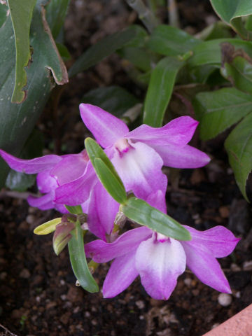 梅雨というのに、この1週間ほどさっぱり雨が降らなかったが、今日は久しぶりに夕方から雨模様。今年の梅雨は比較的おとなしい気がするが、梅雨はあとどれくらい続くのだろう? そうしたお天気話は兎も角、昨日で今年もとうとう半年終わって、今日は折り返してしまった。現役時代とは異なり特段焦る必要もないのだが、しかしなにか物足りない気がするこの頃。 今日の写真は、再びベランダの鉢植えの花。デンドロビウムだろうか?小さいながら色はかなり鮮やかなラン。