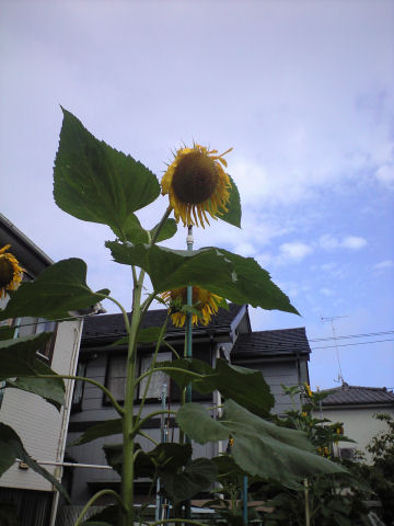 いよいよ「盛夏」という言葉がピッタリの季節になってきた。真夏日が連続するようになり、内陸部では 38℃超えのところも出始めた。 そんな気温に同調したように、昼間の蝉の声も力強くなってきた。日中はなるべく出歩かないようにしているが、その分朝の散歩と夕方のジョギングは半端ではない汗をかく。朝は下着から着替えて汗を拭き、夕方はそのまま風呂に直行。汗をかいたままの状態では気持ち悪く何事もヤル気が失せる。これもシャワーや風呂がいつでも使えるようになった文明病の症状か? 今日の写真は、そんな暑さを待っていたようなヒマワリの花。高さ 3m近い高さでもう首をうなだれるほどに咲いてしまった。 一句: 向日葵の うなだれる首 節電日