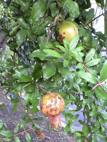 暑さにもめげず夕方のジョギングを続けているが、最近 500mくらい走った頃にやけに疲れると思いながら走っていた。以前も、走り初めてしばらくすると辛くなり、それが2Km位になると逆にあまり辛さを感じなくなるとは思っていたが、最近その辛さが以前よりましてきたような気がしていた。 それが、今日 走り始める前からいつもより疲れていると思ったので、最初からかなりスローペースで歩幅も狭めて走った。途中気がついたら、いつものような辛さはない。 走り終わって歩数計を見ると、3,700歩に近い値だった。これは1年くらい前と同じ値。それが最近は 3,500歩を切って 3,450歩くらいになっていた。歩数にしてわずか 5%程度の違いなんだが、どうやら知らず知らずのうちに歩幅が広く、ペースが上がっていたようだ。ほんの僅かの違いながら、こんな違いが辛さに影響していたのではないかと、身体の正直さにビックリ。それと同時に、こんなに続けて走っているのにその程度のペースアップでも身体が順応せずに辛さを感じてしまうとは・・・と年齢の非情さに愕然。 それにしても、毎日の歩数が 意図してペースを変えなければ 3,500歩で ±30歩(誤差 1%以下)なんて、人間の測距機能もなかなかのもんだと妙な関心。 今日の写真は、朝の散歩道で見つけたザクロの実。愛嬌のある形だ。