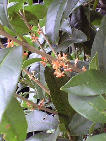 懐かしい友人からの手紙。工学部出身だというのに いまだにメールを使わず、ハガキでもなく封書。これは確かに彼の性格のなせる技だと思いつつ開封すると、やはり数年ぶりの同級会のお誘い。 私達の場合、昼の工学部は教養クラスが電気・機械・建築など各科毎にわかれていたが、夜間は人数が少なく、教養課程は全科が同じクラスだった。専門過程ではそれぞれ履修する科目が異なるのでバラバラになったが、当時から一緒に酒を飲むのはいつも機械や建築の友人で卒業後集まるのも教養クラスの単位で集まっている。 曰く、赤レンガの東京駅が全面修復されたので見に行きたいと、同級の友人に電話したら、久しぶりに同級会でもという話になったとか。私もそろそろと思っていたが、彼を差し置いて音頭取りはためらわれるので控えていた。本当にグッドタイミングだ。来週の土曜日は昼から旨い酒が飲めそう。 今日の写真は、昨日の夕方歩いていたら ふっとわずかに香りが漂ってきた。暗い中で目を凝らすとどうやらもう金木犀が咲きはじめた様子。で今朝散歩帰りに改めて撮影。まだ花の数も少なく、朝では私の鈍い鼻では匂いは感じられなかったけれど、そのうち嫌でも気づくようになるんだろう。