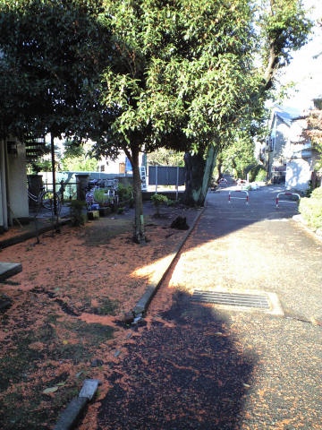 ニュースで尼崎で凄惨な監禁・暴行・殺人事件があり、多くの人が被害にあったと報じられている。 この事件を聞きながら、以前 似たような事件を聴いたような気がしてならなかった。家族を監禁して肉親同士で傷つけ合わせて最後は殺人に至るという、何とも理不尽で凄惨な事件だっただけに、記憶のどこかに引っかかっており、喉に刺さった棘のように気になった。詳細は思い出せないものの九州のどこかだったような記憶で、Webで検索してみた。 結果、「北九州監禁殺人事件」と呼ばれているらしい事件だと分かった。当初大手メディアも大きく取り上げたが、内容があまりに凄惨すぎて報道も次第に自粛傾向になったらしく、途中から目につかなくなったため、今でも犯人の名前が出てくる毒カレー事件のようには記憶に残っていないらしい。 一部で、やはり今回の尼崎の事件との類似性に触れている記事もあり、二つの事件を結びつけて考えたのは私だけではなかったようだ。 今回書きたかったのは事件そのものではなく、人間は個人個人非常に多様な人間性を抱えているが、1億人もいると、ある確率で他人をマインドコントロール下に置く能力と残忍性や異常なまでの自己中心的な性格が同居することがあるということだろうか? そうした人間が登場する度に類似の事件が発生し、歴史は繰り返されるという言い方が使われることになるのかな・・・と今回の事件のニュースを聞きながら暗い気持ちになった。 今日の写真は、気分転換に散り敷いたキンモクセイの花びら。小さな花ながら一斉に散った時の地面は橙色の絨毯のよう。