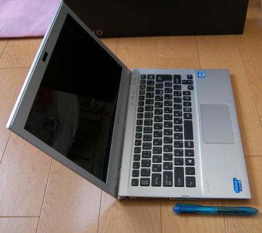 今日は再び寒さが厳しくなった。朝の車の戸外温度計は -2℃。昼過ぎに近くに自転車で出かけたが、日が出ているのに顔が冷たい。 というお天気の話はともかく・・・・ 今日午前中にNotePC Vaio SVT13128が到着。 早速開梱して 起動してみた。 期待通り、外観は薄型で軽快な感じ。iMac Air よりは厚いものの、一昔前の東芝 Dynabook SSシリーズと同じような感じで、重量は軽い。14インチタイプの SVE14シリーズの i5 2.6GHz のシリーズが 同じ価格帯で入手可能で迷ったが、アチラはやはり CPUの消費電力が半端ないらしく、DVDドライブに加えて電池の分だろうけど厚さで +15mm 重さで +1Kg それでも駆動時間が -4時間程度になってしまうので、モバイル用途としてはこちらで正解だったことにしよう。起動もとりあえず何もインストールしていない状態では早い。(キャッシュとしてSSDを32GB搭載している効果は十分ありそうだ) 半年ほど前の発売当初の≒半額、年末ボーナス時の3万円引きで入手できたということはベストタイミングだったようだ。 しかし Windows8 のデスクトップにはかなり辟易。電源OFFが分からないので早速 Web検索するハメに。通常アプリは問題ないが、システムをいじるにはいろいろ苦労させられそうだ。 まぁ それもまた楽しいが。