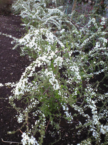 この何日か、散歩の度に新しい花が咲いているのに気づいてビックリ。春が遅いと思っていたが、梅が咲いたと思った途端 突然春になったという感じ。 何日かに分けないと写真が掲載できないが、まずその1枚目。コメザクラだと思うが、花は小さく白一色で地味ながら、これだけ揃うと結構綺麗だ。