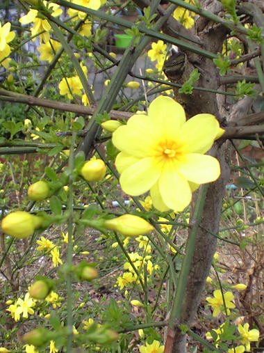写真だけアップしておこう。 今日の写真は黄梅(オウバイ)。 発音的にどうも蝋梅(ロウバイ)と混同してしまうんだけど、全く違う花。ロウバイの方は#767にアップした花で、1月中から咲いていた花でもっと薄い黄色で葉っぱは花より後から出てくる。 このオウバイの花も今年は早い所では 3月の始めころから咲いていたような気がする。#799でアップした写真も、今考えるとオウバイだったかもしれない。 | |
