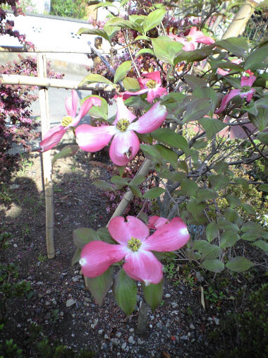 #824にもハナミズキの写真をアップしたが、こちらは随分と派手なハナミズキ。桜並木の工事が終わったところに植えられていた。 | |