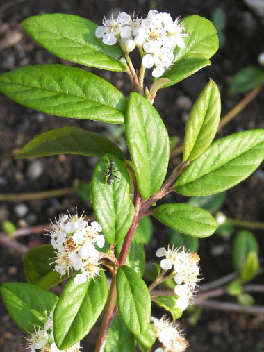 写真だけ。 2週間ほど前の撮影になるが、「ヒサカキ」という榊に似た木に花が咲いていた。遠くから見ると花が咲いているというより虫の糞か何かがくっついているようにしか見えない。近づくと一つ一つの花はお椀型で直径が 3mmほどと小さく可憐なんだけれど、集まると顎(がく)なんだろうか、花を覆っていた部分が落ちて汚い感じでけして綺麗とはいえない花。 | |