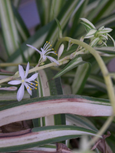 こちらも、まだ注文はないが 注文ページまで作ったので商品種類を増やさなくては!ということで簡単なメッセージやプレゼント主の名前をオーダーメードで入れるようにした。材料費が高いので足踏み器としては破格の価格になってしまうけれど、まぁプレゼント用なら何とか許される範囲か?という下心で。 今日の写真はベランダで咲きはじめたオリヅルランの花。非常に生命力の強い植物で小さな鉢にいっぱい葉を茂らせて、毎年必ず花をつける。 | |