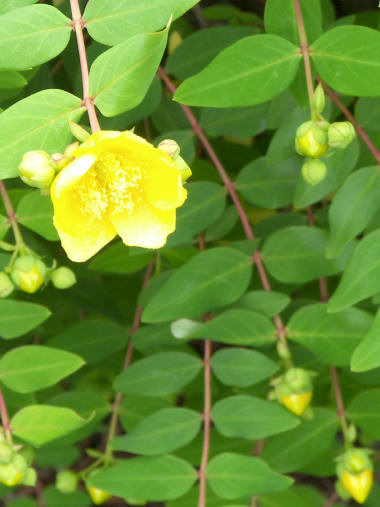 蒸し暑くなってきた。晴れて陽射しがあるのに、夕方 西面に陽が回ってしまってから南面の洗濯物を取り込もうとすると 何となく湿っぽい感じがする。 ジョギングでは 2周め辺りから汗が出始めて、6週が終わる頃には額や髪の毛から滴るようになってきた。その分、走り終わった後の風呂上がりが気持ちいいが。 今日の写真は、とうに時期を過ぎてしまったが 多分キンシバイの花だろうと思う。 1ヶ月近く前、ビヨウヤナギと同時期に黄色の花が咲いていたので、ビヨウヤナギかと勘違いしたが、どうやら葉の付き方や枝の感じは全く異なる。 | |