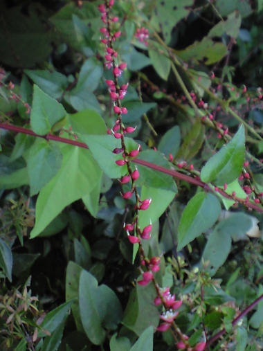 今日の写真は、実? だと思って撮影して来たが、画面下の方をよく見ると花だった。ミズヒキかな? | |