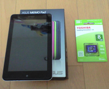 遅まきながらタブレットデビュー!。  コスパ優先で ASUSの MeMoPad HD7。 やはり メモリカードが使えないのは選択肢から外れる。 その足で1年以上覗いてなかったメモリカード売り場を見て様変わりに驚いた。SanDiskが一番高価だが一番品揃えが多い。同じ Class10でも高速版と廉価版とを並べている。一般的には知名度やブランドバリューは低いはずだがよほど優秀な営業を迎え入れたんだろうか? 東芝と同じ工場のほとんど同じラインで製造しているのに東芝ブランドより若干高い。 しかし、まず電源を投入して暫く 初期設定の文字入力やら、アプリの切り替えやらに四苦八苦。何とか 第1目的の LINEはインストールとユーザ登録が完了したが、友達の電話番号登録はこれから。慣れるには暫くかかりそうだ。
