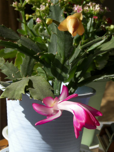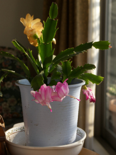 今日の写真は、居間で咲き始めたシャコバサボテンの花。去年買った鉢が、今年は見事に花をつけた。 | |