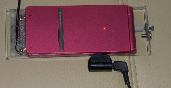 何回か前に、MP-3プレーヤが壊れたので無料通話の LINEを使うために買ったタブレットで睡眠導入剤の音楽を聴いていると書いた。しかし、通常 LINEの着信待ちや簡単な Web閲覧のために 居間に置いてあるタブレットを夜だけ私の寝室に持ってくるのは、それはそれで結構面倒になった。そこで、娘たちが使わなくなった携帯電話の有効利用ということで音楽再生機能を使うことにした。近年の携帯電話はどれもミュージックプレーヤ機能を搭載しているので、持ち出して携帯音楽プレーヤとして使うのはともかく、ベットの枕もとに置いておいて マイクロSDカードの MP-3などの楽曲を再生し、PC用スピーカから音を出すのには都合がいい。  数台ある使わなくなった携帯電話を物色し、音楽再生が出来る機種を選んだ。しかし、携帯電話端末のイヤフォンジャックは特殊なコネクタで、充電端子も兼ねているので充電器と同時使用ができない。充電用クレードルがあればいいが、捨ててしまったのかどれもない。しばらくの間、夜の間はイヤホン用コネクタで、朝になったら充電用のコネクタを差し替えて使っていたが、暇を見て充電端子から充電できるように充電クレードルを手作りしてみようと思い立った。それが上の写真。底部の充電端子に、他の携帯電話を分解して取り出した電池切片をプリント基板にはんだ付けして、反対側からネジで押しつけるようにしてある。ネジで押しつけるよりは適当なバネで押しつける方がスマートだが、ちょうど良さそうなバネは手元になかった。携帯を立て置きして自重で切片に接触する構造も考えたが、イヤホンジャックのコードが出てくる方向の関係で、平置きの方が無難だと判断。その他、本体トレーは瞬間接着剤の使える材質という選択肢から CDの透明ケース蓋を切断して使用。ただ枕元に置いておくだけなので、外観は無視。機能はしている。