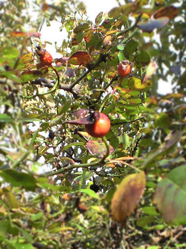 今日の写真は、先日藤野の家に行った際に撮影したローズヒップの実。花が終わった庭は、やけに赤い実が目に付いた。 | |