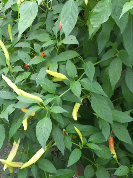 写真はトウガラシだろうか? とある家の塀の端っこで色づいていた。 | |