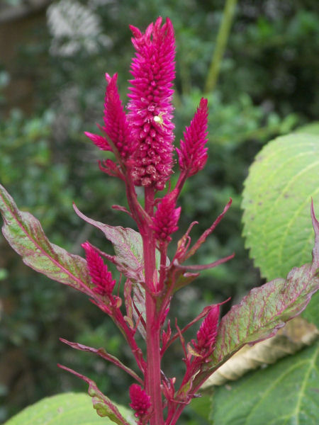 新しく咲く花もぐんと少なくなってきたが、この花も随分前から咲いている。ケイトウの花。小さなころはよく見た花で、その頃はずいぶん派手な花という印象だった。最近は世界各地から移入されたきれいな花、珍しい花が多く、こうした旧来の花は人気がないのかあまり見なくなった。この花も一本だけ並木に咲いているが、誰かが植えたというより鉢植えか何かの土を捨てた中に種か根っこが残っていたんではないだろうか? 良く見ると、花に生まれたばかりのようなクモがいる。 | |