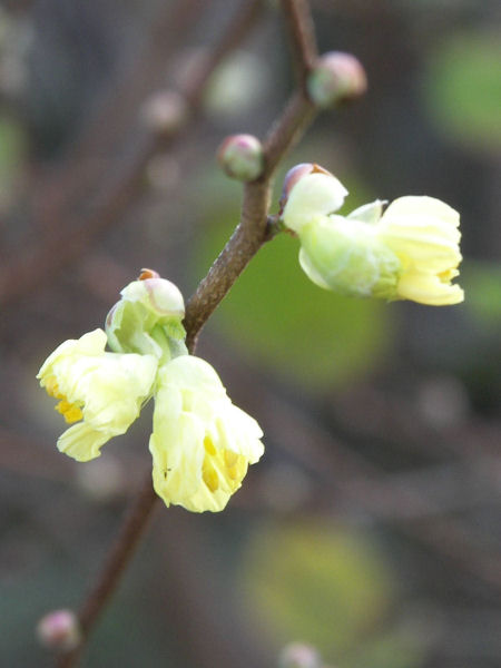 一段と寒く本格的な冬の気候になったが、時を同じくして何日か前からロウバイの蕾がほころび始めた。開ききる前は本当にきれいな輝くような黄色で、開くと透明感のある黄色になる。黄色い花は色々あるけれど、これほどきれいな黄色は他にはないと思う。 | |