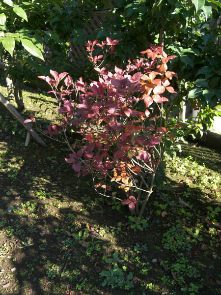 昨日の天気とは打って変わって、今日は11月末のような雨模様の寒い天気。気が付いたら指先が少し荒れてタオルや靴下に引っ掛かるようになった。年をとって身体の反応が鈍くなっていると思うけれど肌は確実に気候の移り変わりに反応しているようだ。そろそろ冬布団が欲しくなりそう。 さて昨日の写真はニシキギ科ニシキギ属のマユミだったけど、今日はご本家ニシキギの写真。この写真はたまたま2週間ほど前に紅葉が始まっていたので撮影したもの。名前の通り、紅葉すると葉っぱは色々な色に変わる。周りの木はまだ紅葉していないので一層目立つ。 それと、この木の特徴は何と言っても幹や枝にヒダが付くこと。皮の裂け目から樹液が出てコルク質のフィンが付くらしいが、野生種ではあまり付かない物もあるとか。この写真の木は、下の方に見える枝にも立派なヒダが付いているから紛れもない園芸種なんだろう。 Webで見るとこの木にも花が咲いて実がなるようなので、マユミの実を見た後で確かめに行ってみたが残念ながらこの木に実は付いていなかった。 | |