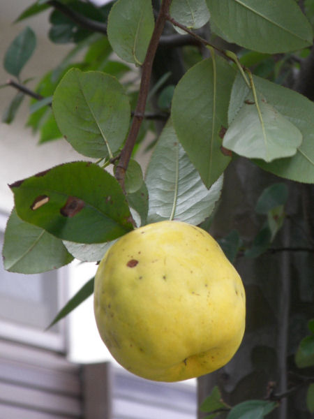 今日の写真は木瓜の実。なんと戻り咲の花も同時に咲いていた。木瓜の実は子供のころ齧った記憶がある。酸っぱいだけでボソっとした感じで美味しくはなかったような。木瓜酒などという言葉を聞いたことがあるから、焼酎漬けにすると美味しいのかも。 それよりも、私の故郷ではこの花の色が「火」を連想させるせいだろうか? 木瓜の花を持って帰ると家が火事になる・・・・と言われていたような記憶がある。 | |