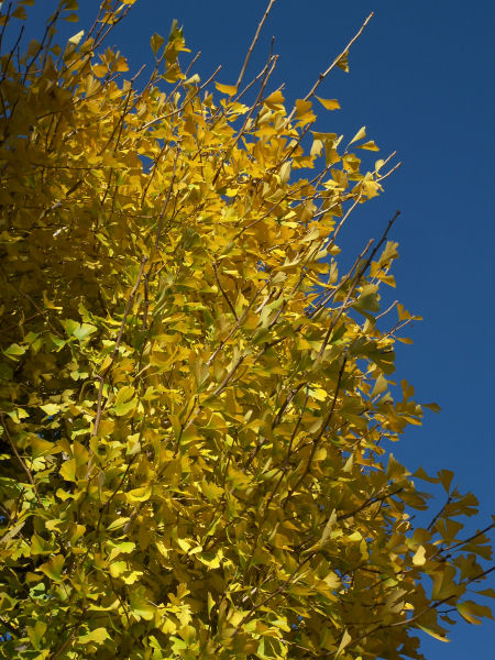 これはイチョウ。朝日があたると金色に光る。 | |