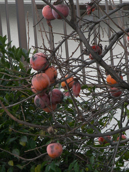 今日の写真は、いよいよ撮る物がなくなってきた。苦し紛れに残り柿。撮影は 2週間ほど前。鳥に食べられて、今はもうほとんど残っていない。 | |