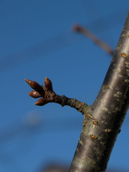 今日の写真は緋寒桜の花芽。まだまだ硬そうだ。 | |