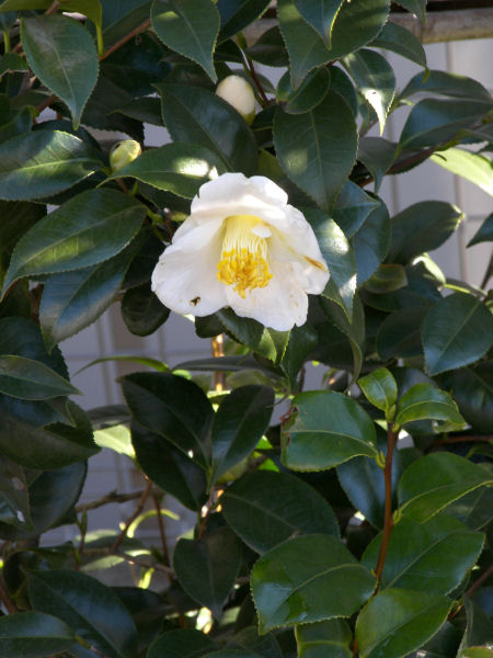 今日の写真は白いヤブ椿だろう。赤いヤブ椿も、白侘助もすでにアップしたのに いよいよ新しい花がなくなってきたので。 | |
