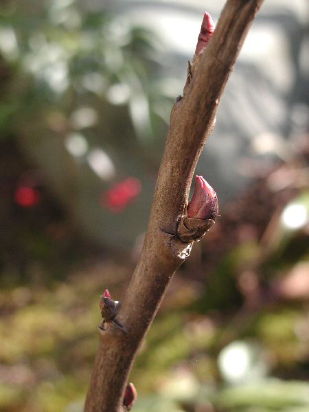 明けましておめでとうございます。 去年はイラクの戦争や年末のイランの大地震で5万人近い人が亡くなったり、物騒な事件が次々起こされたりと世紀末的な世相だったのに対して、年が明けたら小泉首相の靖国神社への初詣以外、大きな出来事も無かったようでまずまずの新年が訪れたようです。私は家族に一郎さんがいることもあり、家で普段とおりの休日を過ごしております。 皆さんから頂いた年賀状や新年のお笑い TV番組などを見ながら、のどかなお正月です。今年はこの e日記のテーマを何から始めようかなどと思いつつすごしました。 とりあえず、今年もよろしくお願い致します。 (庭を見ると、寒い中 春の準備は着々と進んでいます。今日の写真は葉っぱの芽が出て膨らみ始めたボタンの木です。)