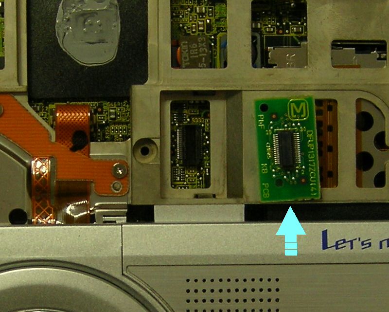 ここからが、難物 PCのHDD交換に挑戦です。まず、5V仕様のHDDを 3.3V仕様のボディにつなぐために、ロジックの5V供給Pin(41Pin)と (多分)この3.3V供給HDDであるという認識のためのPin(44Pin)をラジオペンチで折ります。コネクタのピンは比較的硬くてもろい金属ですから先の細いラジオペンチで根本付近から何回かピンを曲げると簡単に折れます。どちらのピンも端っこにあるので左右を間違えなければ間違ったピンを折ってしまうと言う事はなさそうです。 PC本体のHDDが生きている内に交換する場合は、このHDDに USB変換アダプタを付けて内蔵HDDのデータを転送すれば、交換した途端に起動してくれますが、O/Sが起動しなくなってからではそれが出来ないので交換してからリカバリーするしかないので、このまま交換します。 Let's NoteのHDD分解記事は Webのここに詳しく載っています。まずは、電源のACアダプタと電池を外してから 底面のビスから外して行きますが、私の場合 外したビスの場所を間違えないように下の写真のように、紙の上にかなり広く両面テープを貼っておき外した位置が分かるように両面テープに貼付けていきました。いつもはただ置いておくだけなので、さわって位置が変わってしまうと元の位置がもう分からなくなってしまいます。今回は上記の情報のおかげで、準備が出来ました。感謝! ![]() 使用するドライバは精密用のプラスドライバを使います。ドライバは「小は大を兼ねる」 と思われがちですが、溝にあったサイズのモノを使わないとミゾを壊して最悪、回せなくなります。 キーボードは薄い金属板に乗っていますが、外すときに少しでも力を加えすぎると金属板が薄いのですぐ曲がってしまいます。キーボードの周辺が何カ所かが本体上カバーの内側のツメに引っかかっているので表面から小さなピンセットかマイナスドライバーなどで1個づつ外すのが良いようです。キーボードが外れてくると、フレキシブルキバンの先がコネクタに刺さっているのが分かります。このコネクタは、フレキキバンの上の白い部分をコネクタとは反対側にツメなどで引っ張ると 2mmくらい抜けてきてフレキキバンが抜けます。 後は、上記ページの情報を参考に分解しますが、私の場合 テープでロック部品を止めなかったので、バネまで全部外れてしまい、組立て時かなり楽しませてもらいました。 それと、下の写真のように キーボードのフレキシブルキバンを止めているコネクタが載っているキバンはこれまた、本体キバンにコネクタで接続されています。