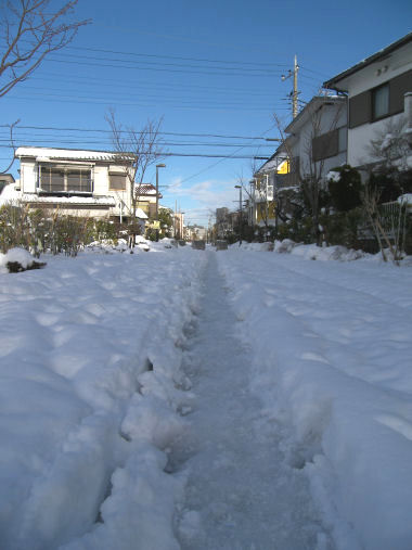 今日はまた、朝から雪。先週よりは湿った雪だが、朝 9時頃にはすでに 2cmくらい積もっており、午後には道路を走る半分くらいの車がチェーンを装着していた。先週の雪で準備ができていたのと、スリップして難儀した学習結果だろう。