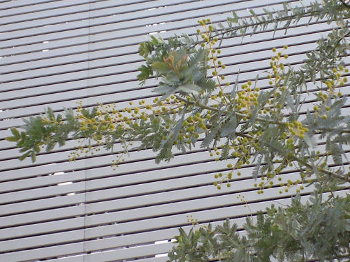 昨日の続きで、片付けの話。 かなりの板材を貯めてあったが、それを捨てようと取り除くと、隅っこにゴム製恐竜のようなものが張り付いている。トカゲのようでもあるが、身体が扁平で色は乳白色っぽい。ギョッとしたが、よく見るとノロノロながら動いている。 どうもヤモリのようだと気付いた。当然ベランダも 6Fだから、こんな高いところにどうやって? 鳥かコウモリにでも運ばれた? と最初は驚いたが、落ち着いて考えてみれば垂直壁面などはお手のものだから、地面から這い上がってきたとしても不思議ではない。今が冬眠の時期だからノソノソとした動きになっているだけで、夏なら 6階分くらいあっという間に移動するんだろう。 でも、藤野に住んでいた時も、トカゲはよく見たが ヤモリはあまり記憶にない。あそこは寒すぎたんだろうか? それとも、現代は住宅街の方が住みやすく生息数が多いんだろうか? とは言いつつ、私も人並み?の感覚を持っており「家を守る」と言われてもあまり気味の良いものではないので、動きが鈍いのをいいことに棒ではさんで落下していただいた。こうした小動物は落下速度も速くないから、地面に激突して・・・という心配もないだろう。どうしてもこの階が好きでまた上ってくるといけないから、建物の改修が終わったら粉末殺虫剤でも撒いておくことにしよう。 今日の写真は、ギンヨウアカシアの蕾。蕾も黄色いので一瞬花が咲いたかと思ったが、去年のことを考えれば花はずっと大きな房状の見事な花だった。そのうちに咲きだすだろう。 |