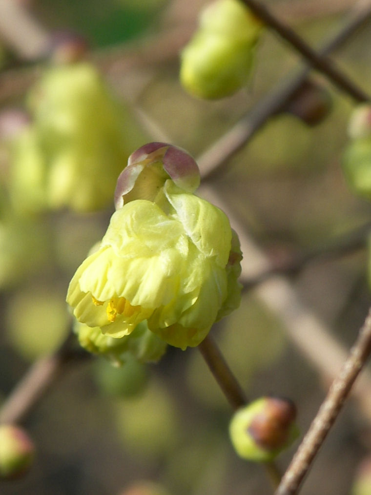 背丈 50cmほどの低木に、黄色い花がびっしり咲き始めた。Webで調べると、土佐水木とか日向水木という花らしい。 1Cm程の小さな花なので、ヒュウガミズキの方かもしれない。去年もここは歩いていたが、こうしてアップの写真を見ると奇麗だが、遠目には地味な花なので気付かなかった。