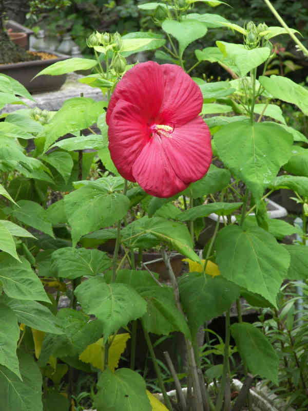 岡谷から忙しく帰って来た。いない間に、EU域内ではおぞましいテロやクーデター未遂が勃発したようだ。 今日の写真は近所の空き家の庭に今年も咲き始めたアメリカフヨウの見事な花。この家の主はいなくなったようだが、庭の植物はそんなことは関係なく相変わらず季節の営みを繰り返している。おそらく おぞましい事件の起きた地域でも、片隅ではそんな人間のいさかいに関係なく、去年までと変わらぬ自然の営みが続いているのだろう。(当初 トロロアオイと書いていたが、記憶違いでアメリカフヨウと訂正) |