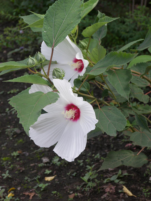 もう7月も終わるという頃になって、やっと梅雨明け宣言が出た。気象庁が満を持して発表しただけあって、今朝の空は青空と言い雲と言い「夏」というラベルを貼ってもいいくらいに典型的な夏空で、散歩を終えて帰ると汗が吹き出し、慌ててエアコンの部屋に飛び込んだ。 写真は、白いフヨウの花。この花を見るたび女性の白いブラウスの布地を思い出してしまう。色や質感が子供の頃見た誰かのブラウスの強烈な印象と重なっているんだろう。残念ながら誰だったかは全く思い出せないし、心当たりもないが。 |