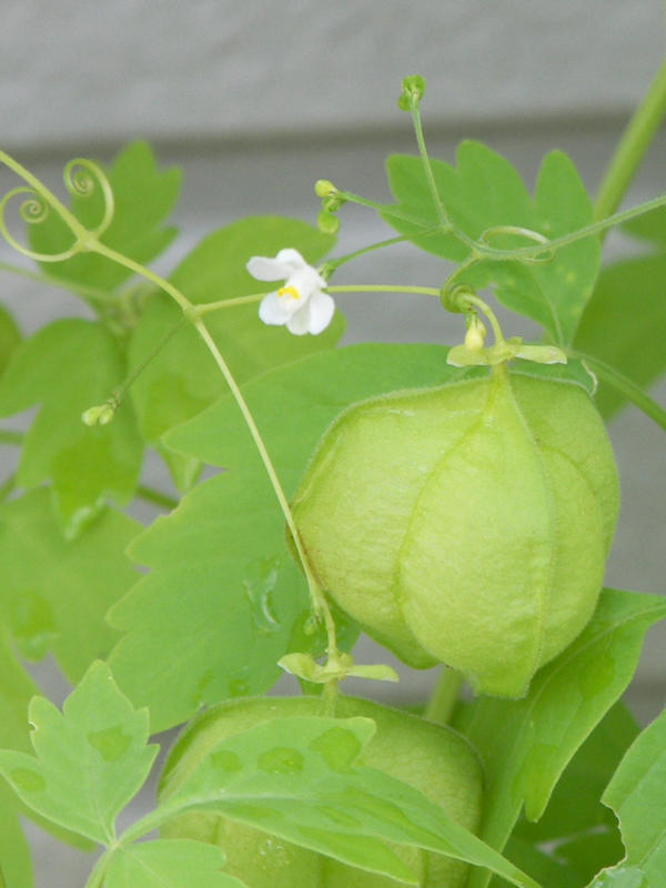 写真はフウセンカズラの花と実。もう時期的には遅いが黄色くなった葉っぱやフウセンの実の中にまだ花が咲いたり緑の実がなっていたりする。