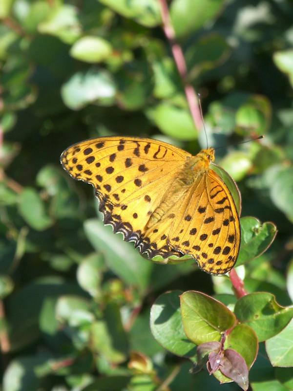 わずか一日の秋晴れで 今日はまた朝から小雨で外に出られなかったので、昨日の撮影。マンサクの葉っぱにとまるヒメアカタテハ? ヒョウモン?蝶 どっちかだと思う。